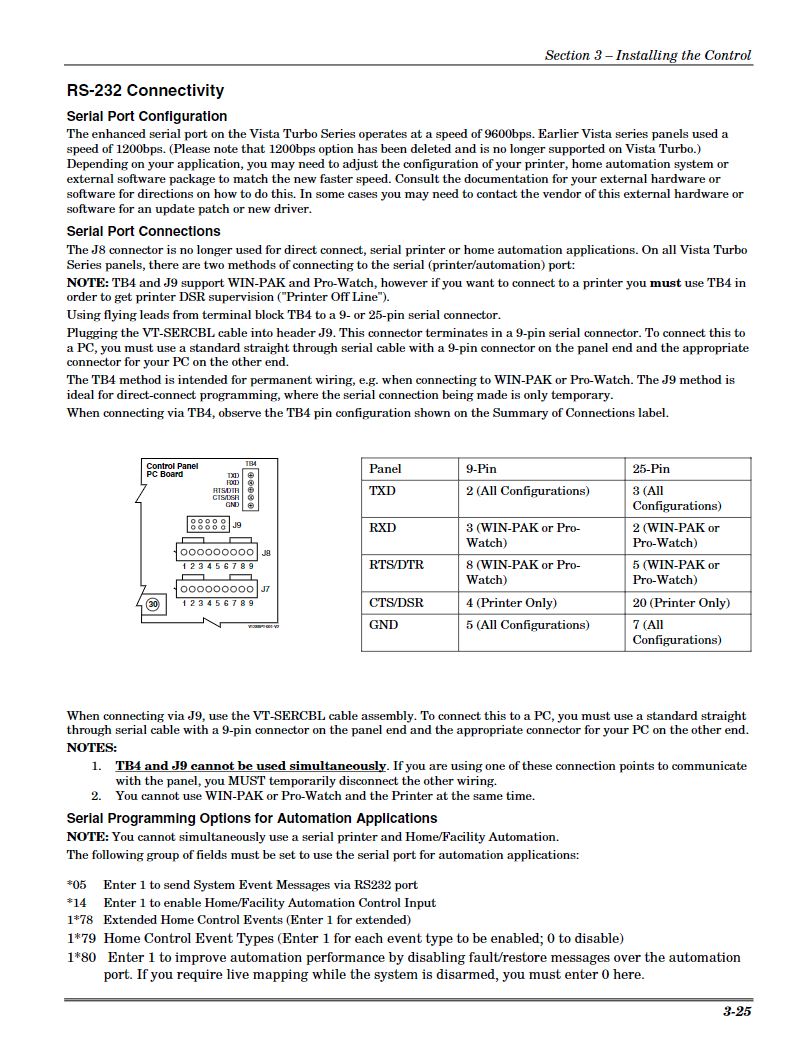 I have a Vista 128bpt in my home. I used the Paul Cupp authored Crestron modules from an eternity ago. I found that the feedback on the modules was sometimes delayed by up to seven seconds. I found the issue deep in the bowels of one of the Simpl+ modules and fixed it. Now feedback occurs in, at most, a second. I run this integration on a CP2E. I can post these modules here if anyone is interested. Not sure what the serial cable does that @CaseyBenjamin posted earlier as these panels have onboard RS232 that you can connect just about any three conductor copper cable. |
